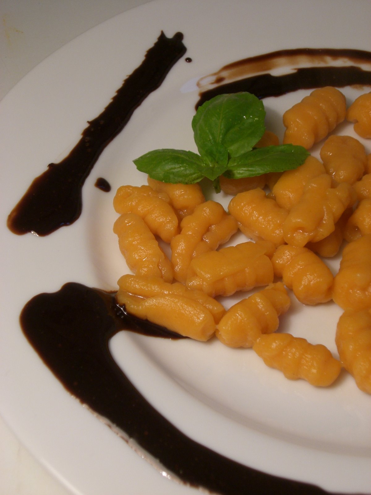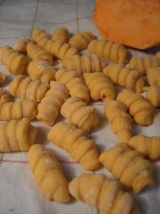 J’ai toujours un problème avec le dimanche, je pensais qu’une fois mes études terminées, cette angoisse qui date au moins du Cours Préparatoire disparaîtrait… Hé bien non. Donc cet après-midi au lieu de ranger mes papiers, j’ai fait des gnocchis de patate douce accompagnés d’une sauce à base de vinaigre balsamique réduit et caramélisé.