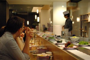 Matsuri, vous connaissez le principe ? Les petites assiettes hors de prix défilent et vous les attrapez au vol… Rigolo mais pas nourissant.