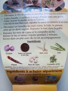 L’occasion de se cuisiner un bon petit plat en 10 minutes sans passer chez Tang Frères et sans se retrouver avec des quantités bien trop importantes de produits que l’on n’utilisera peut être plus (ici la sauce au tamarin et soja ou encore les deux branches de kalé). Au déballage, et malgré la proximité de la date limite d’utilisation, les produits ont plutôt une jolie tête.