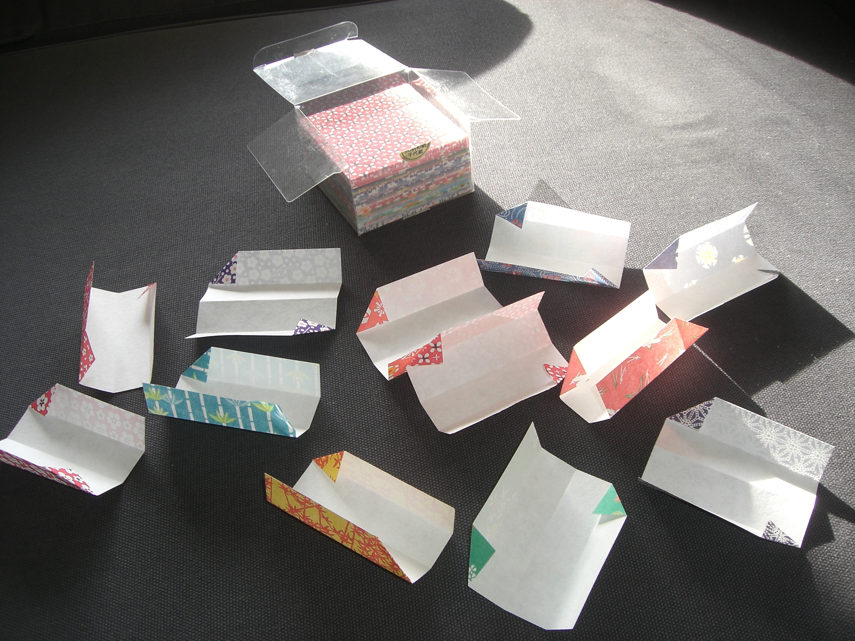 * 12 carrés de papier (japonais ou non, uni ou à motifs, le papier doit être à la fois solide et facilement pliable).