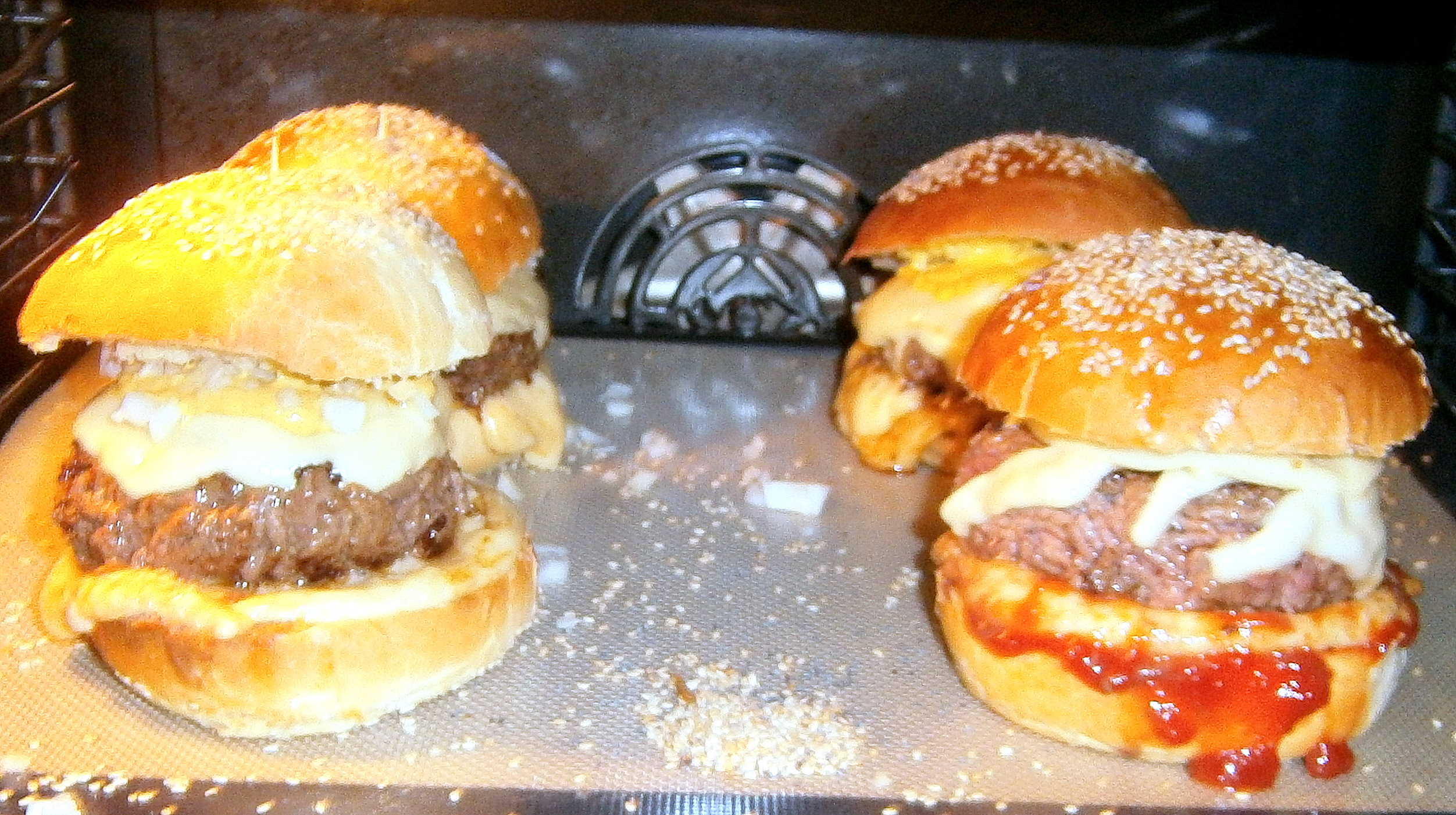 La photo vérité : Oui le ketchup-qui-coule-là – droite c’est un peu cracra, mais c’est tellement bon… Et puis une feuille de silicone, ça se nettoie très bien !