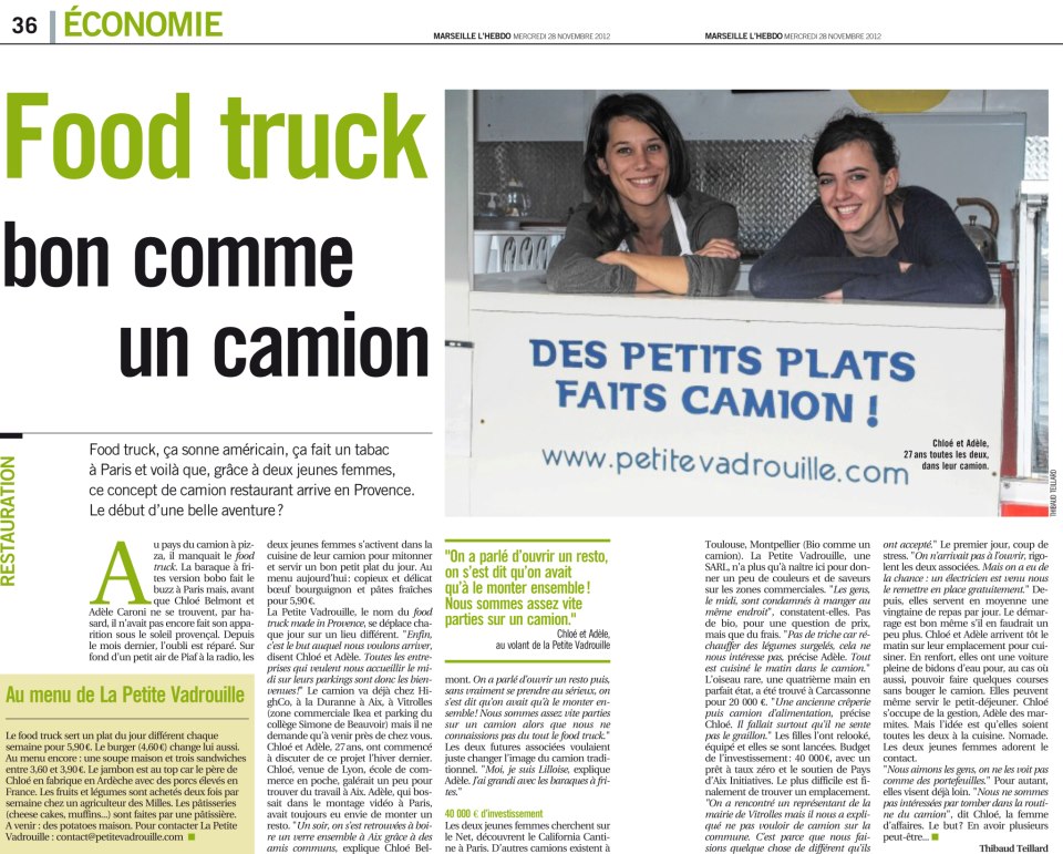 La folie food truck gagne la Provence. Adèle et Chloé les deux jolies filles du camion La petite vadrouille proposent depuis octobre 2012 leurs bons petits plats faits camion d’Aix à Marseille en passant par Vitrolles !