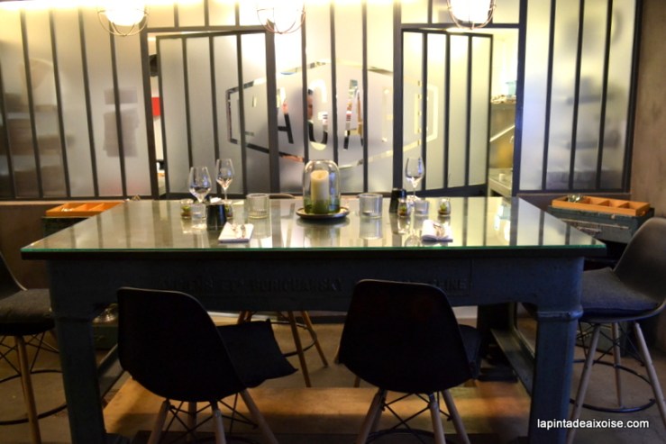 J’ai hâte de revenir pour tester le menu en huit plats et la table d’hôtes de la deuxième salle au style plus indus’… Cette table, prévue pour deux à six personnes, surplombe toute la salle et offre une vue plongeante sur la cuisine par les vitres sablées des grandes verrières.