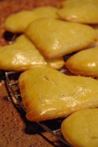 Recouvrir les biscuits avec leur moitié, souder soigneusement les bords de ceux-ci avant de les dorer au jaune d’oeuf restant.