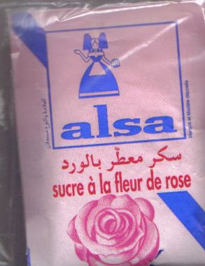 Pour rester dans l’esprit du voyage, entre jardin anglais et patio oriental, découper une pêche jaune en quartier et la saupoudrer de sucre à la rose Alsa (j’ai mangé ça chez Marie, malgré la marque bien connue je n’en n’ai jamais aperçu le moindre sachet dans une épicerie et pourtant… j’en veux ! On en trouve partout au Maghreb mais pas ici. Le produit se vend même sur ebay, il faut croire que la denrée est précieuse).
